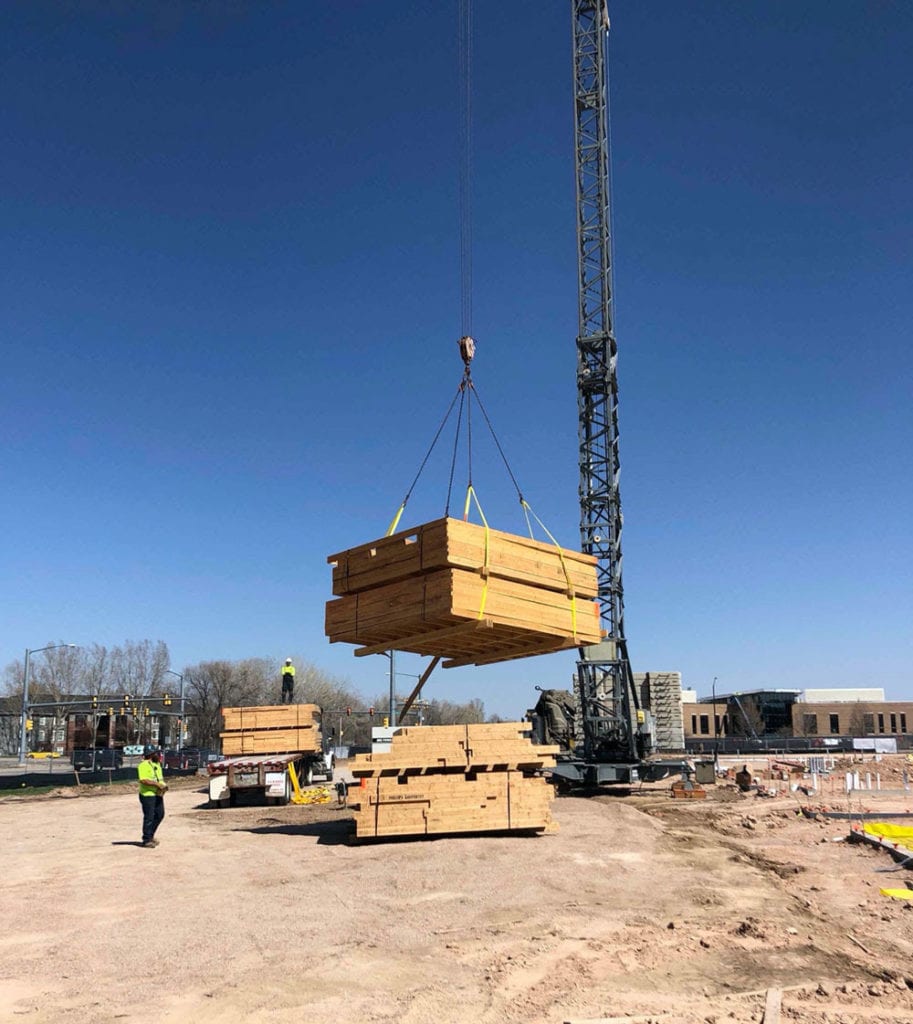 Last week and this weekend, construction was going strong. The crews finished with the underground plumbing and electrical work. The slabs for the building were poured on Friday and Saturday. Half of the prefabricated walls were delivered, and a huge crane was setup to get the walls up early next week! Elder informed me on Friday that they are working very carefully to follow the Governor’s Executive Order to the letter in order to maintain the safety of the crews and insure they are allowed to continue working. Crews are to wear protective face coverings and maintain social distancing as possible. They are also continuing to monitor the health of workers as they arrive on site. Below, enjoy the photos showing half of the slab that was poured on Friday as well as the crane lifting some of the walls off of the delivery truck.