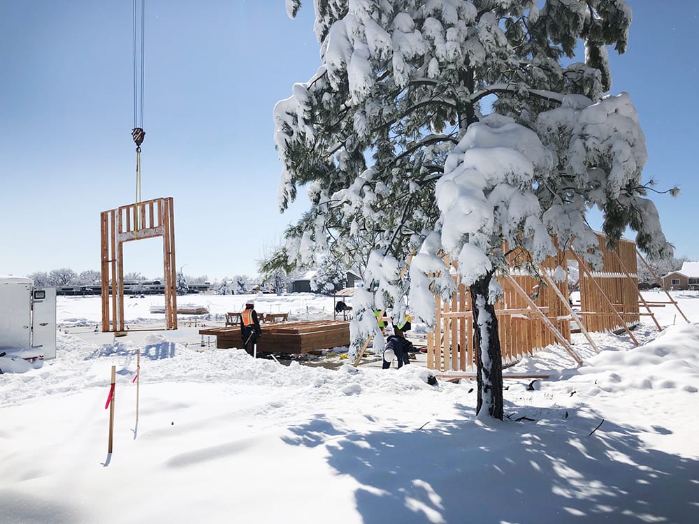 As the snow came down, the walls went up! Thank you to our team at Elder Construction for going the extra mile ensuring we are ready for school in August! The first walls came up right around 8:03 am on Monday morning. That is quick.