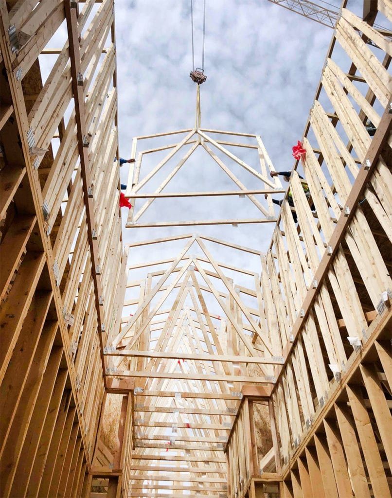 The roof trusses were scheduled to be installed on Friday and many of them made their way up before the wind became too strong to safely continue. While we all are eager to keep the building on schedule, safety is always the number one concern. The Elder team made the right choice to pause until the wind calms down.