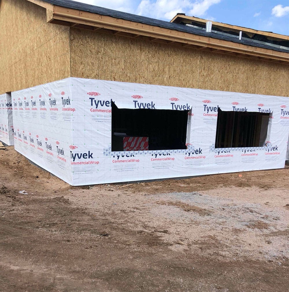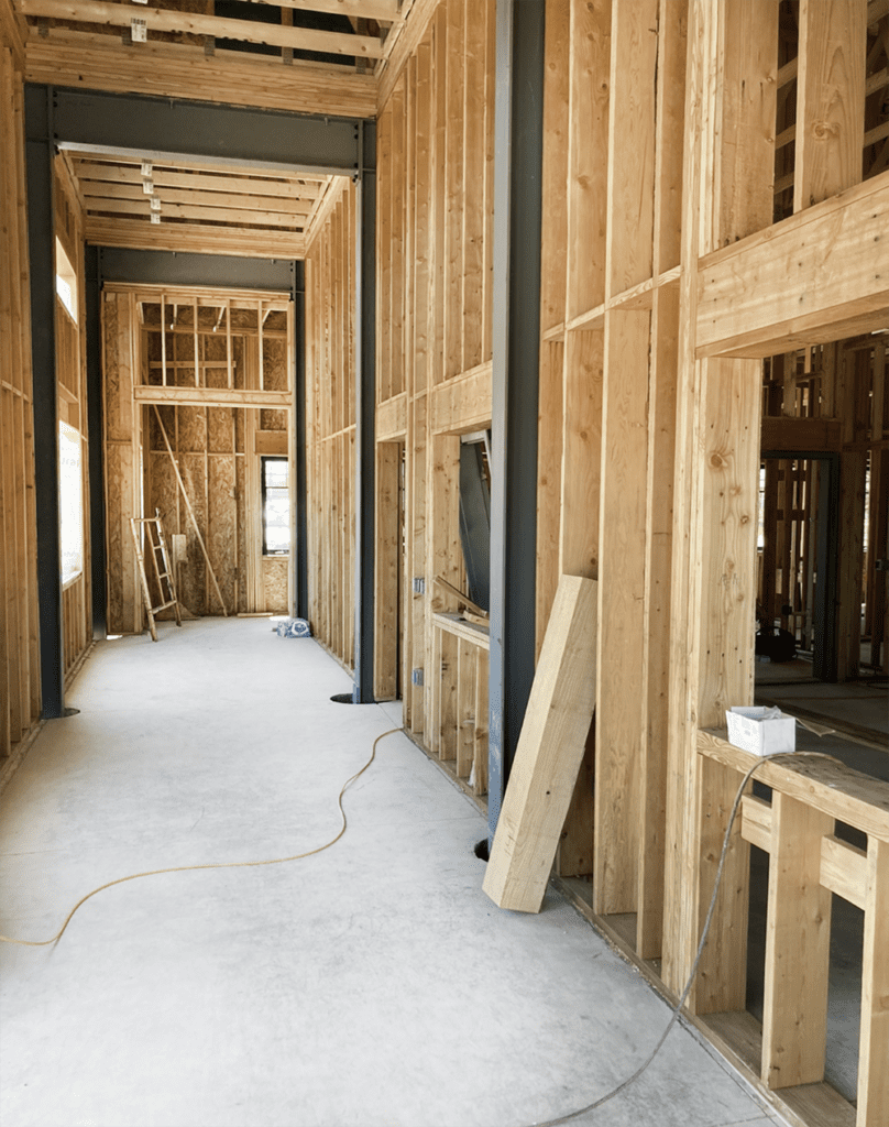 While you may only be able to see that three of the four multipurpose room walls are finished and the weather Tyvex barrier has been wrapped around the outside of the building, many more trades have been at work. Please enjoy some of the images from the inside.