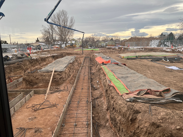 On Saturday, the construction crew poured much more of the foundation footers in preparation for the foundation.